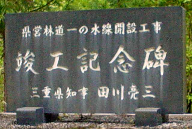 林道一ノ水線開設工事の竣工記念碑 (撮影 2004. 5. 3) |