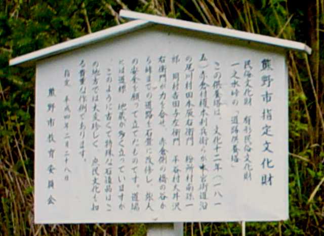 熊野市指定文化財の立札 (撮影 2004. 5. 3) |
