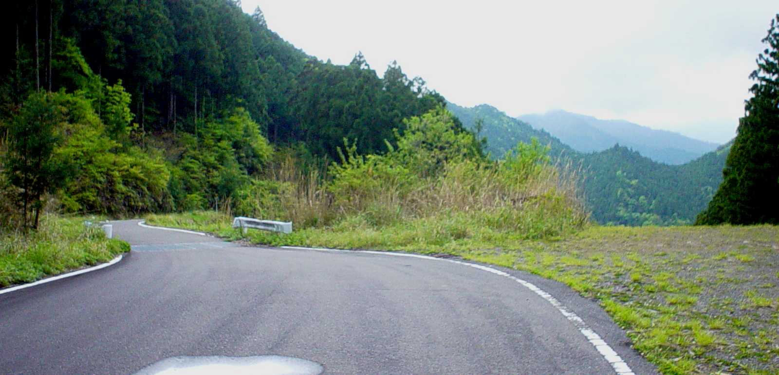ガードレールがある箇所は旧峠方向から流れ下る水が側溝を通っている