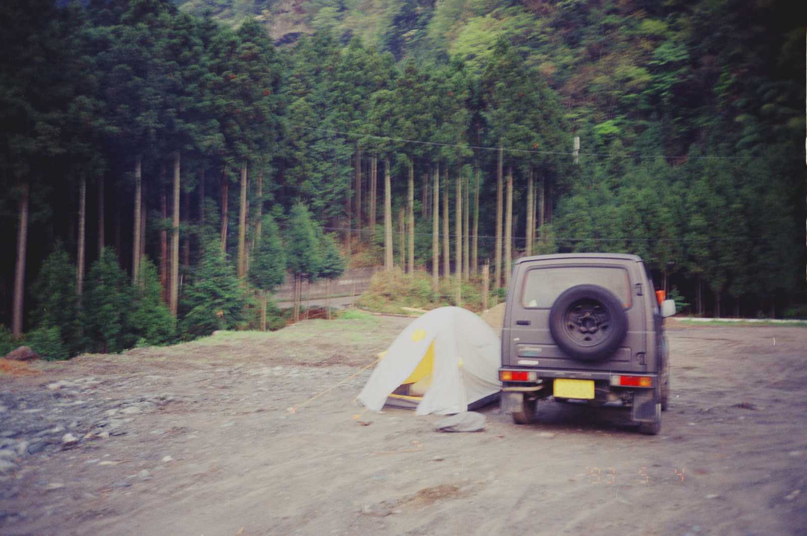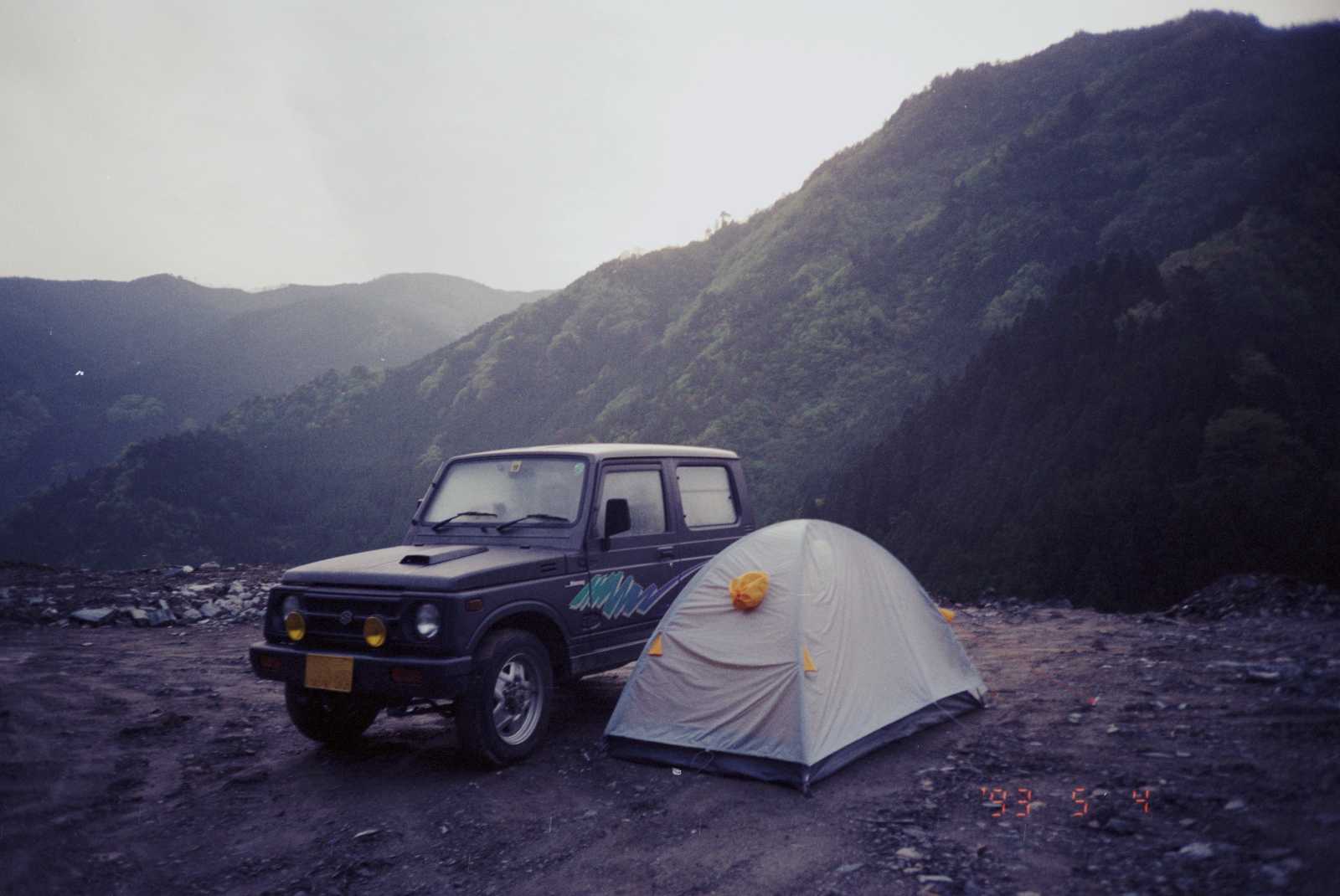 ![]() 猿田川沿いの野宿地 (撮影 1993. 5. 4) 奥に県道126号が通じる 手前は猿田川を望む (画像をクリックすると別ウィンドウに拡大画像が表示されます) |
