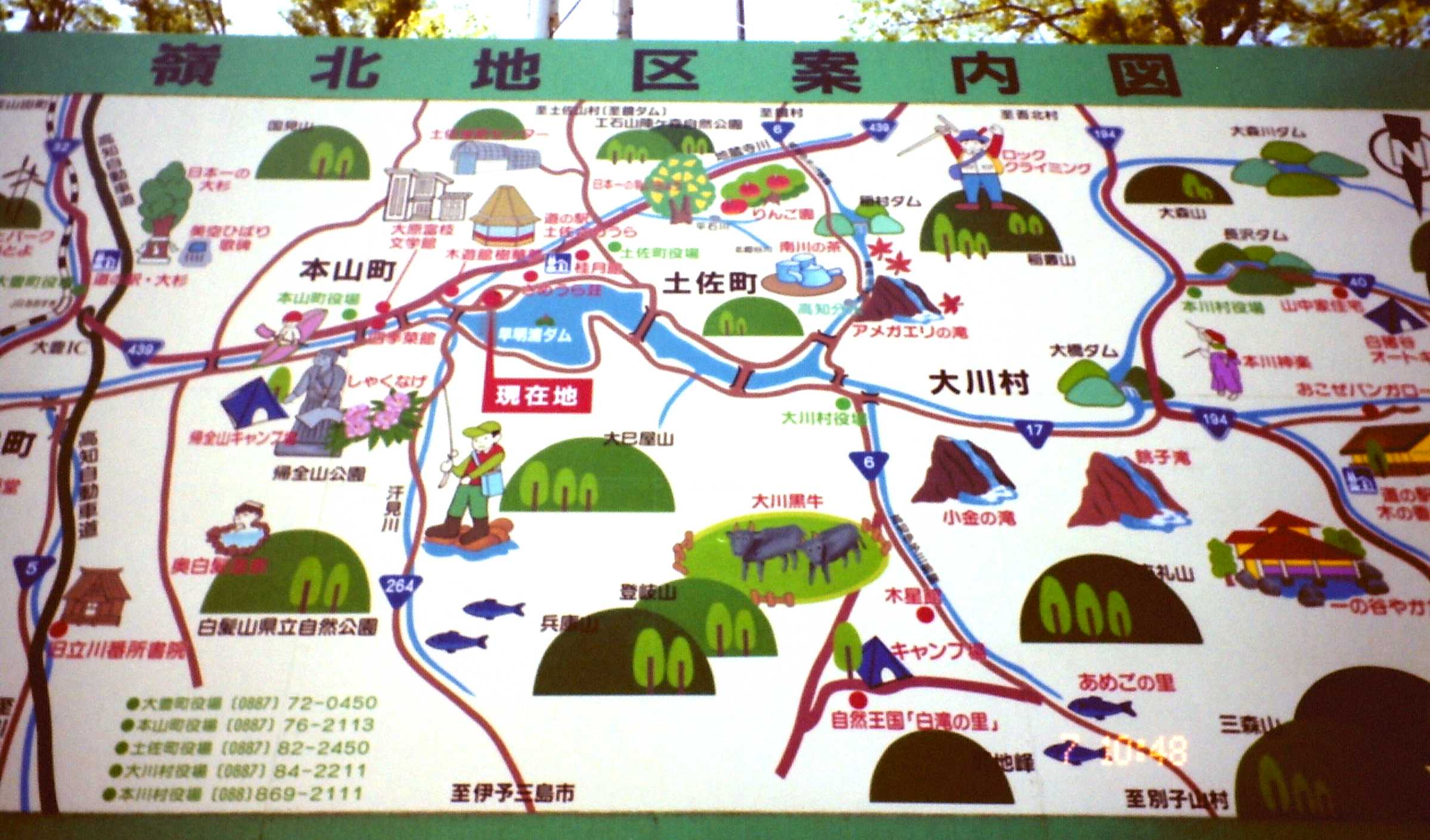 ![]() 銅山川沿いの県道6号 (撮影 2004. 5. 8) 富郷渓谷付近(地理院地図) |