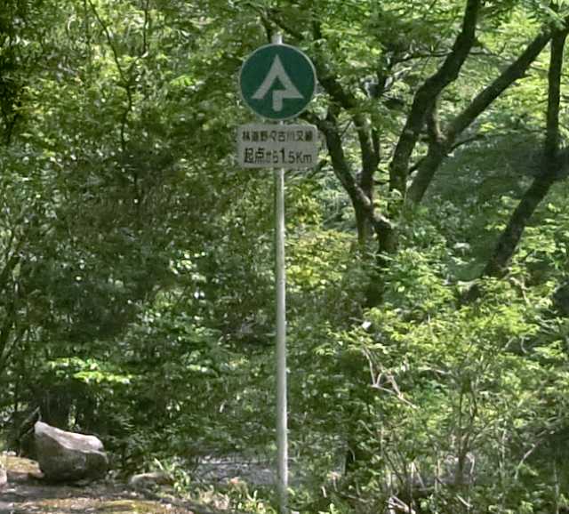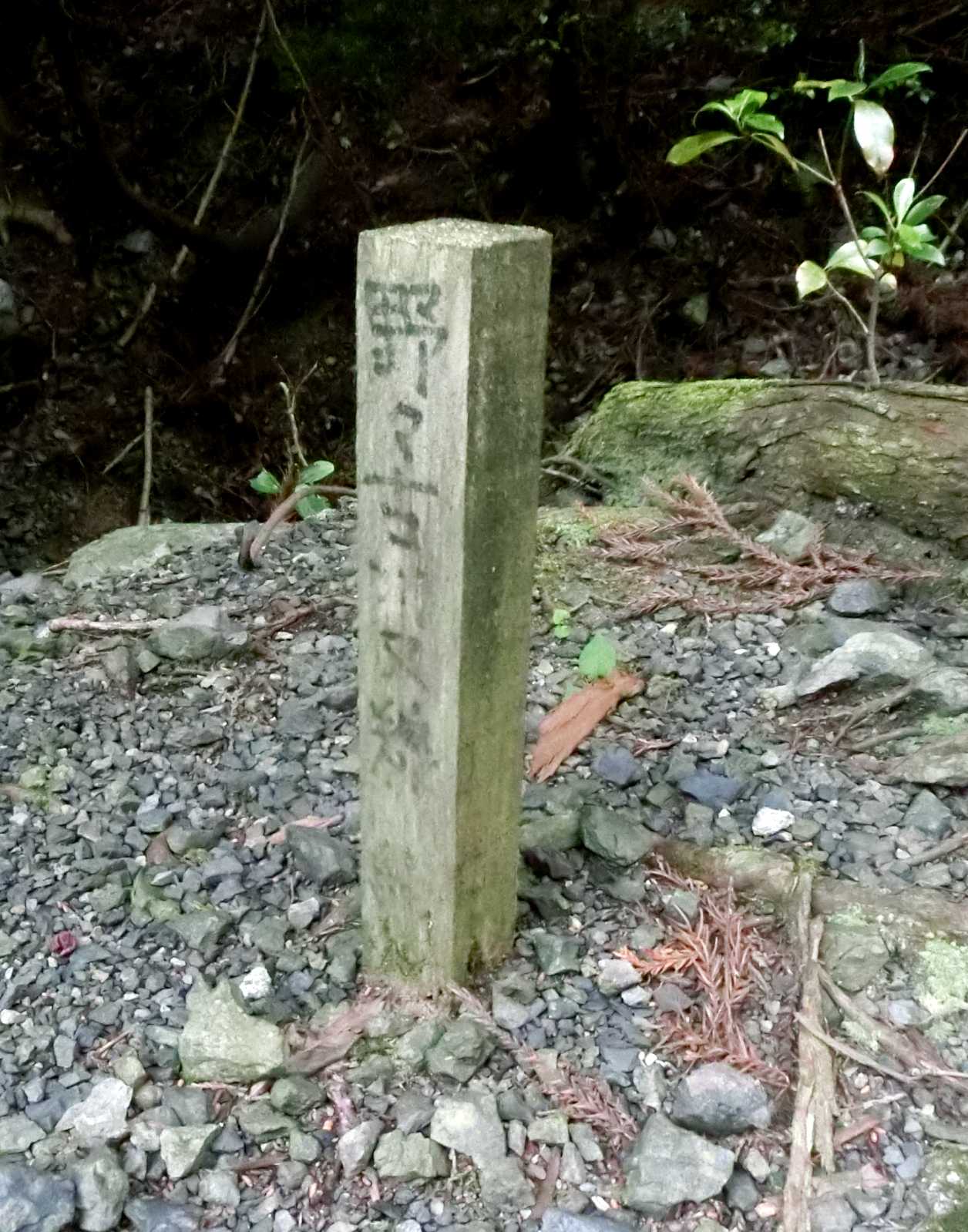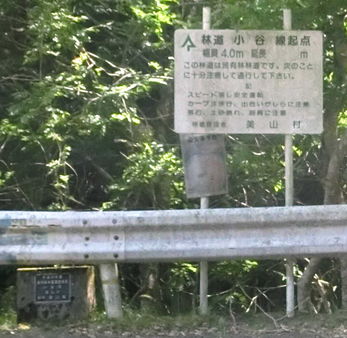 「印南町」と書かれた看板がポツンと立つばかりで、他に目を引く物はない。しかし、よくよく見て回ると、小さな林道標柱が立っていた。「野々古川又線」と書かれている。その後にはっきりしないが「終点」ともあるようだった。