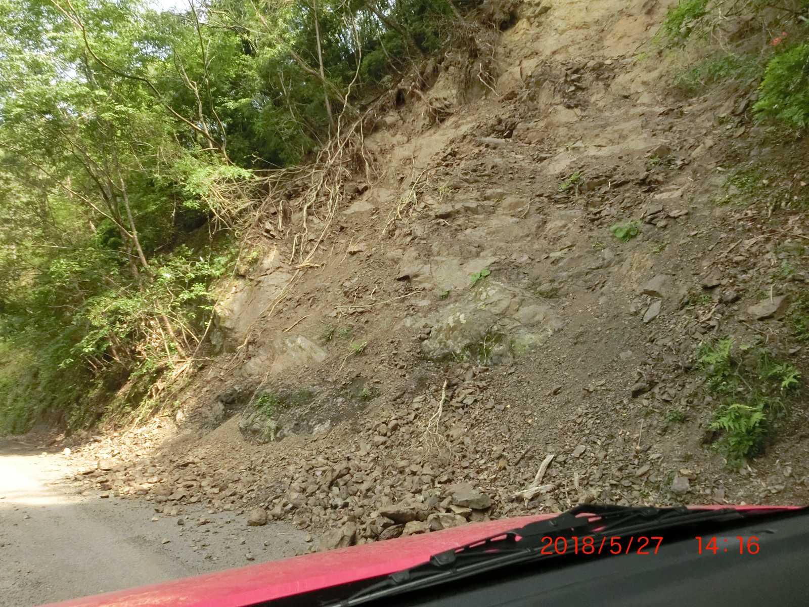 路肩が崩れた箇所 (撮影 2018. 5.27)
