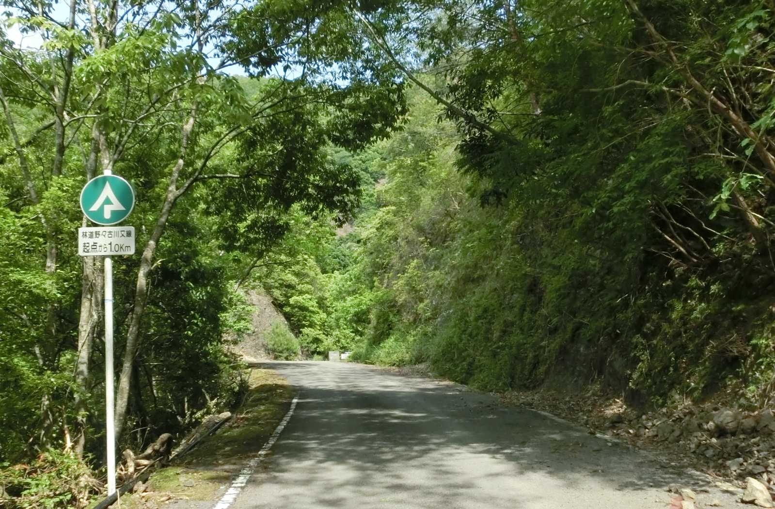 林道看板では林道野々古川又線の延長は6,629mとなっていた。但し、カッコ付で8,603mともある。約6.6Kmは日高川町側の峠までの距離で、約8.6Kmは国道424号に合流するまでの峠道全線の距離と思われる。よって、印南町側は約2Kmと短い。
