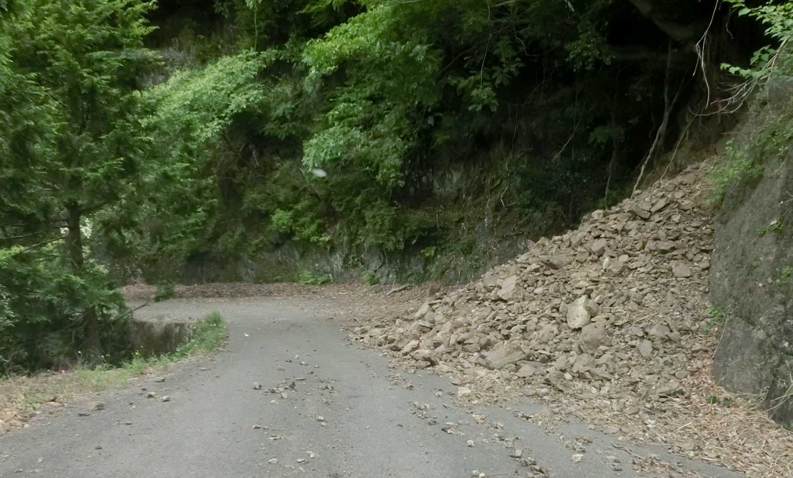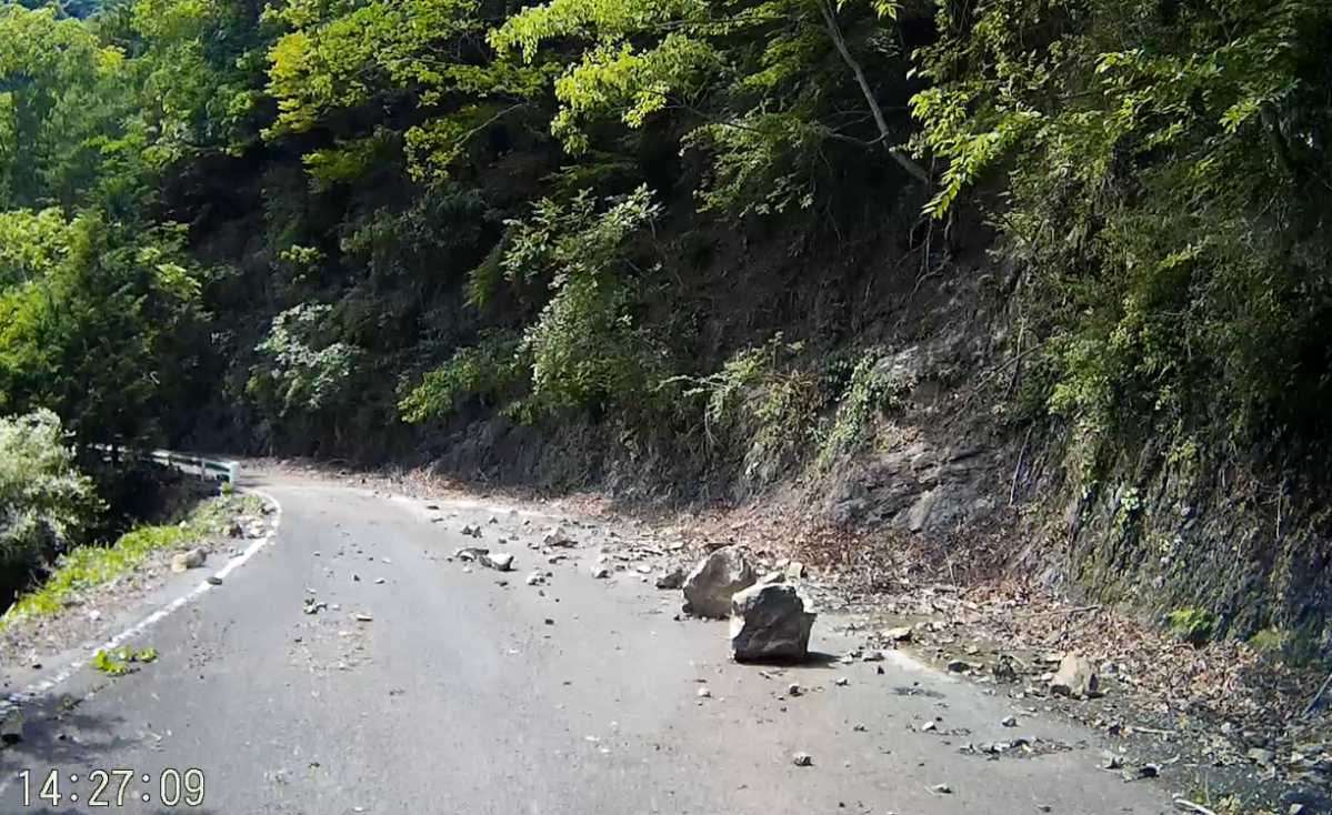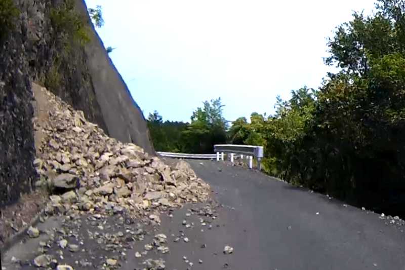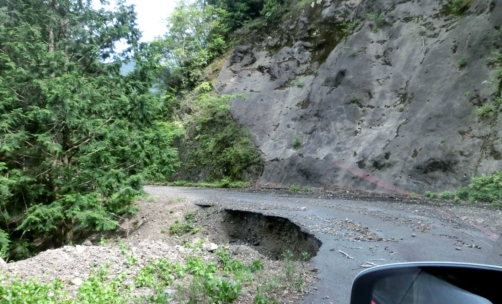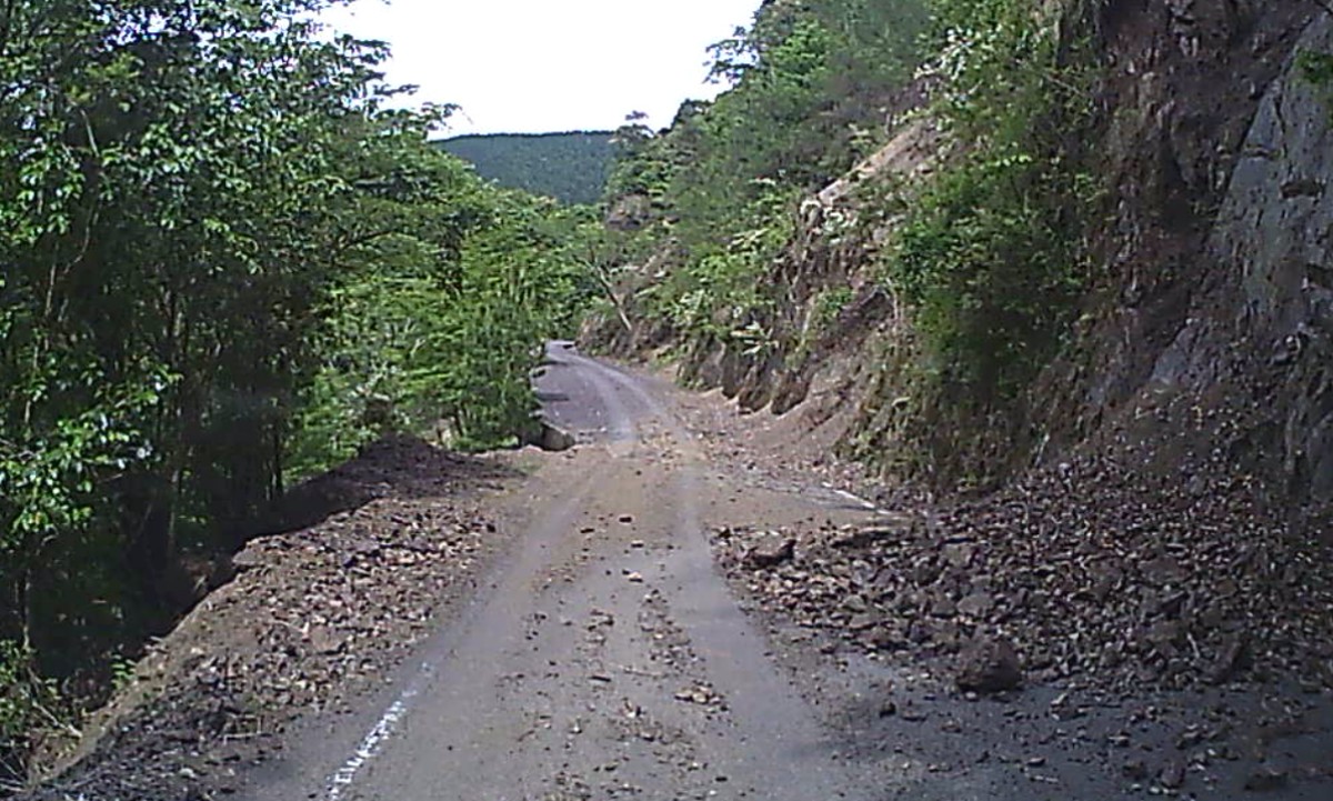 折角の幅広いアスファルト道路が土砂崩れで道幅が半分になってしまっていた。その後も小規模ながら土砂崩れが連続することとなった。一つ間違えると通行不能にもなりかねない。