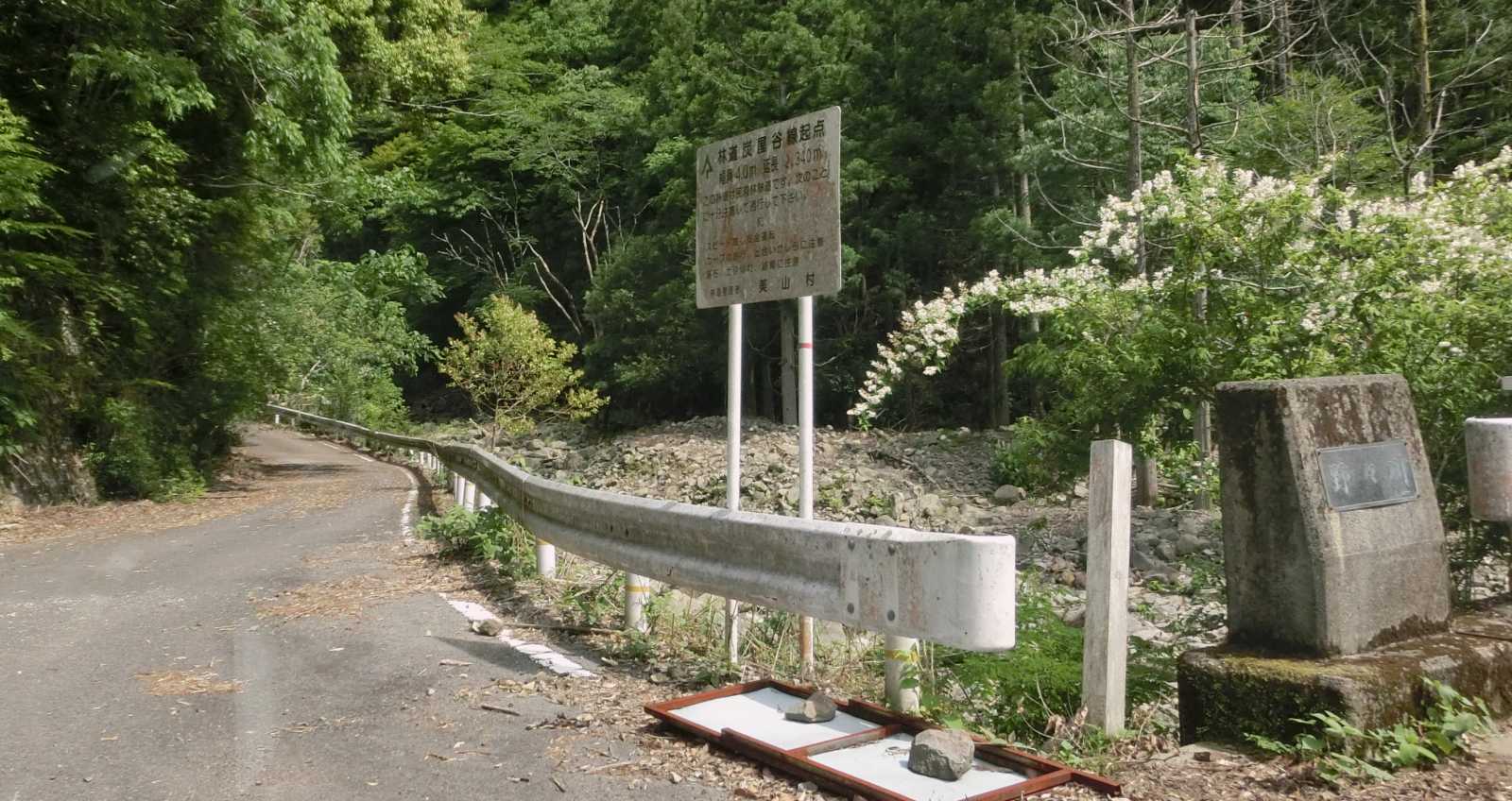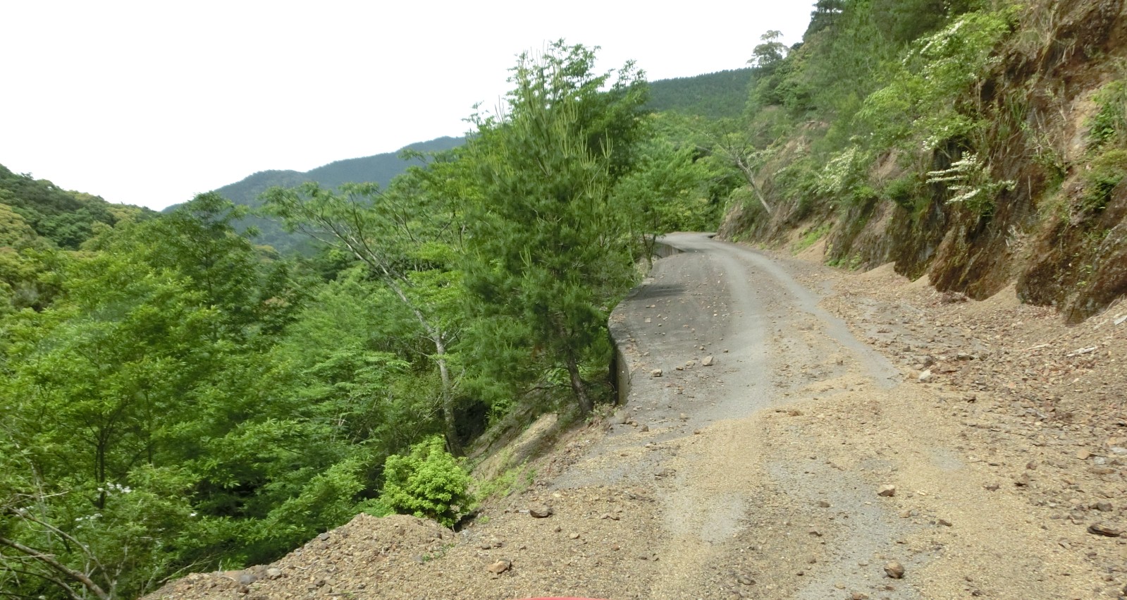 峠に通じる野々古・川又線(野々古川線)は見事に全線舗装化された林道だったが、私が越えた時点では補修が間に合っているようには思われなかった。こうした山間部に通じる道は土砂崩れなどの被害が絶えない。