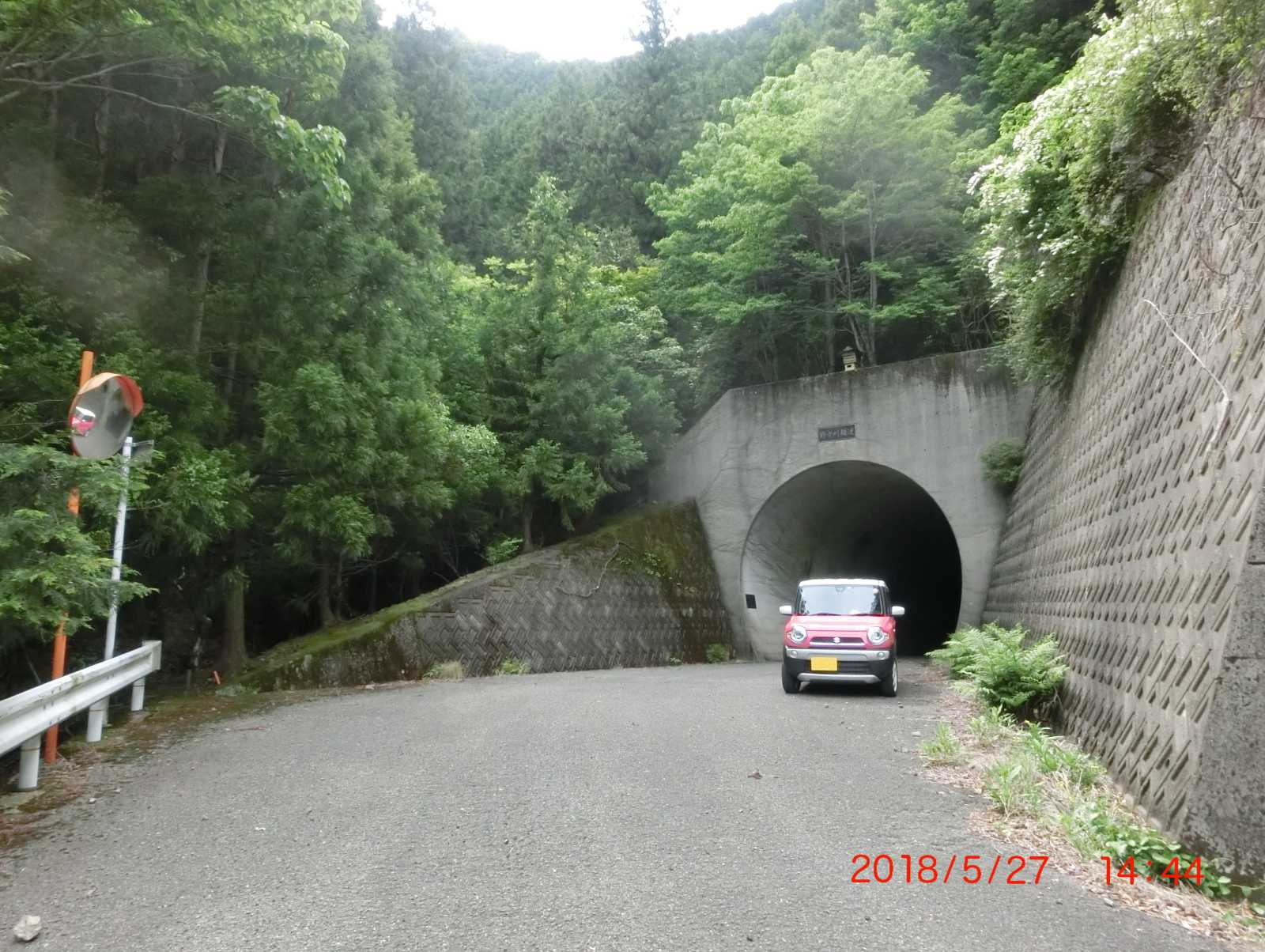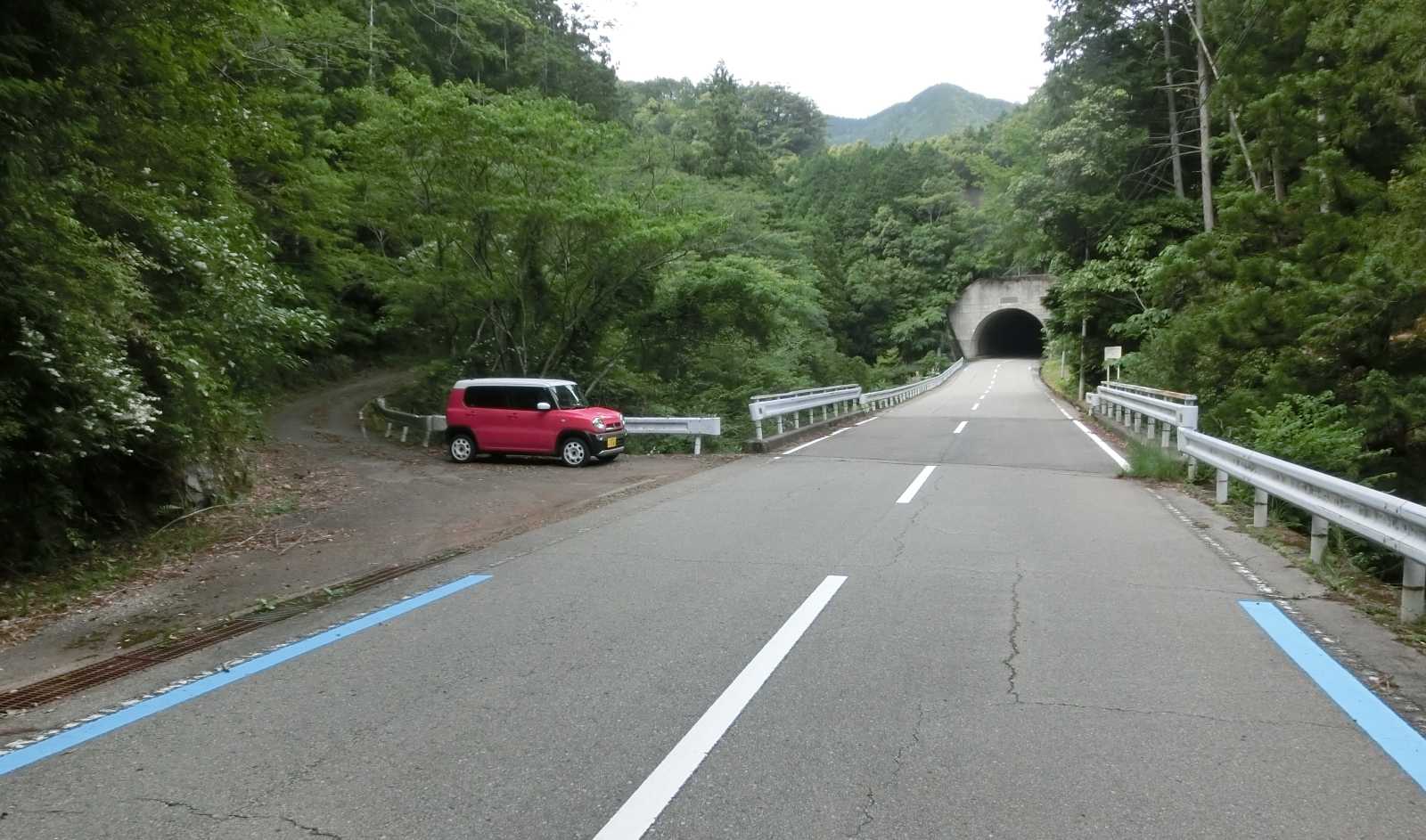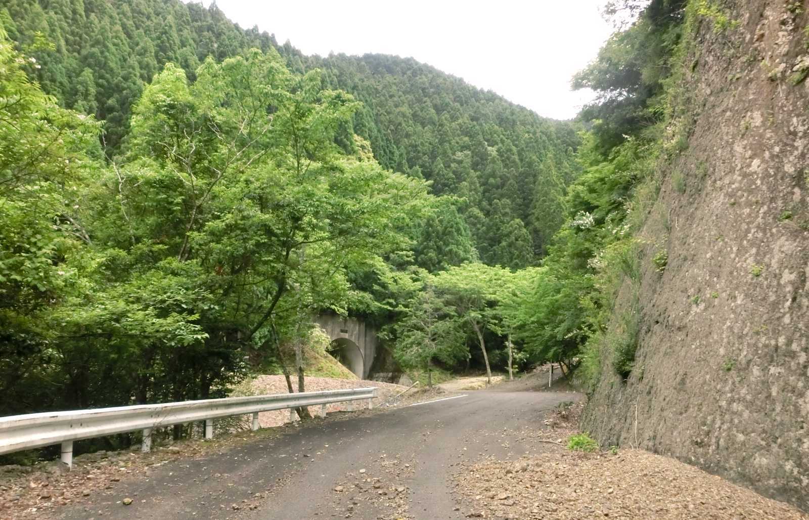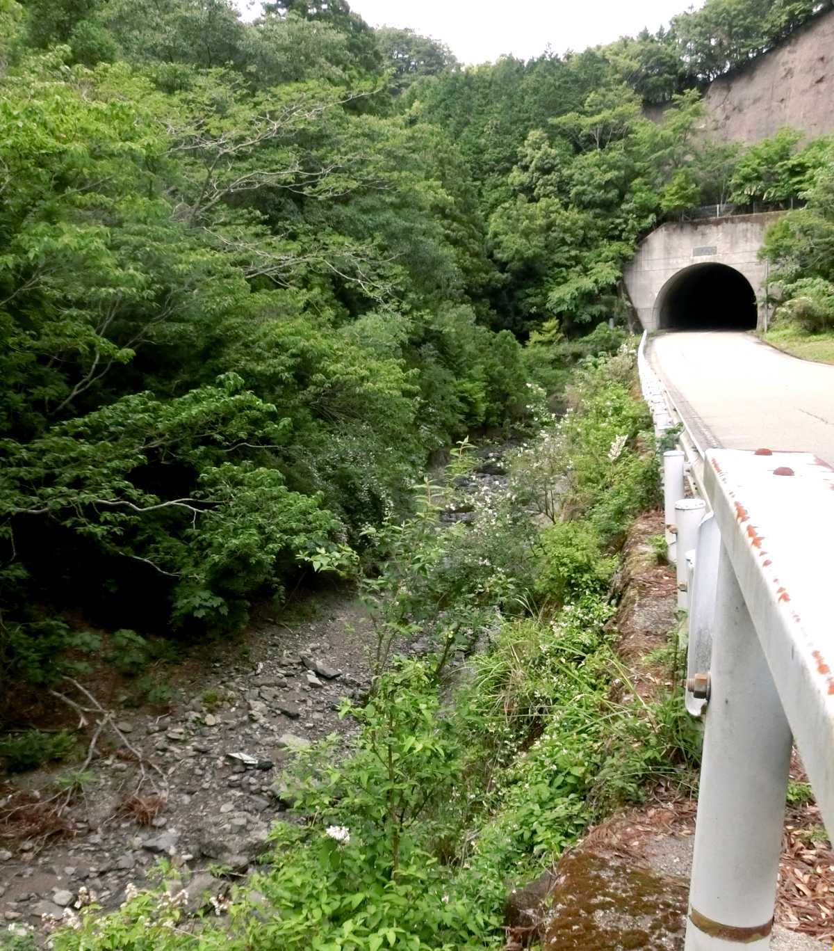峠道分岐から国道を切目川上流方向に望むと、直ぐそこにトンネルが見える。しかし、切目川分水界の峠に通じるトンネルではない。切目川のちょっとした蛇行をショートカットする為の小さな川又トンネルだ。