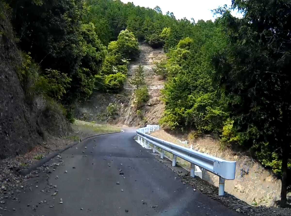 きれいなアスファルト舗装で道幅も十分、要所要所にガードレールも完備で快適・安全な道かと思わせておいて、急に路肩が崩れていたりする。油断ができない。