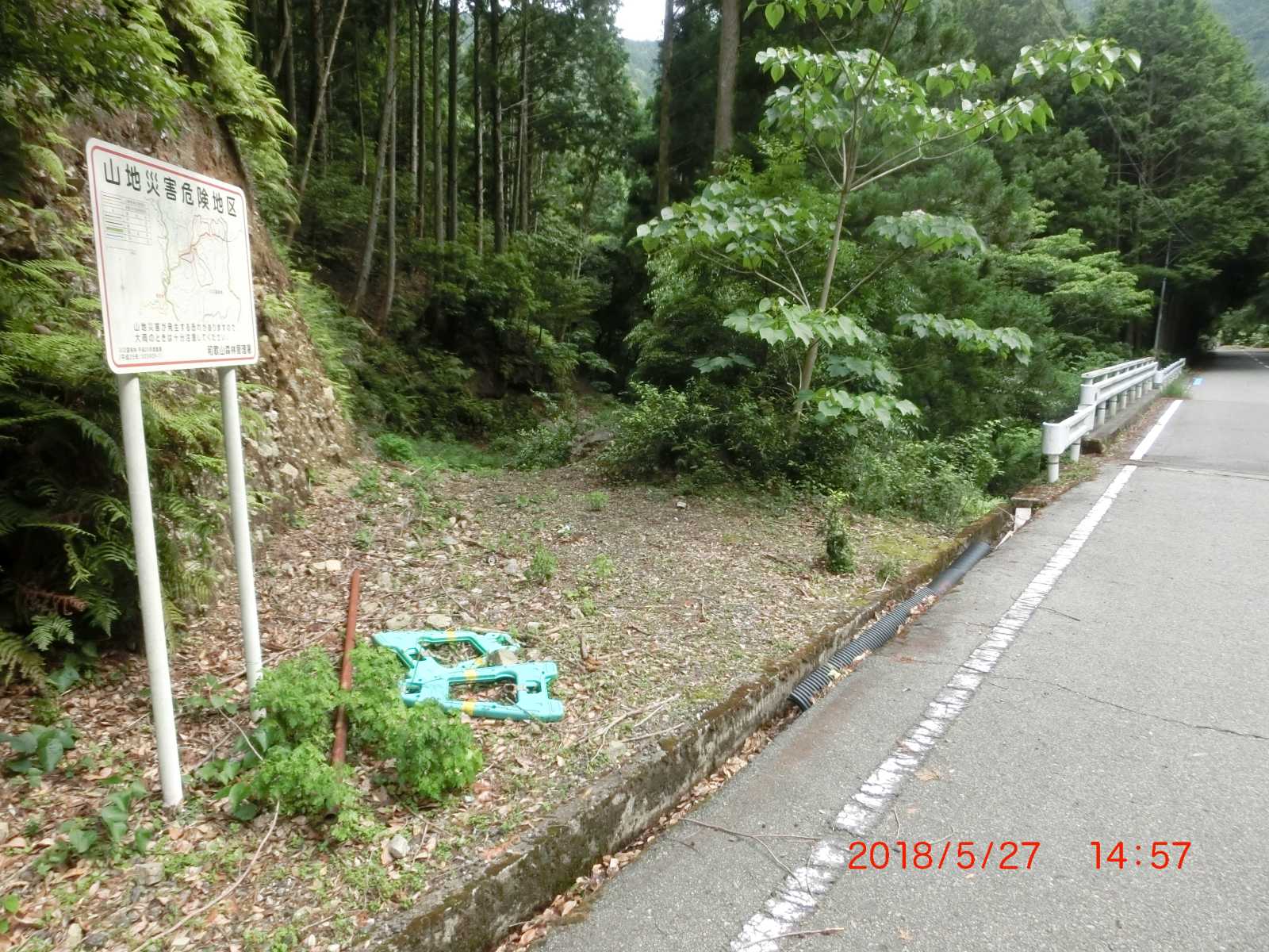 山地災害危険地区の看板 (撮影 2018. 5.27)
