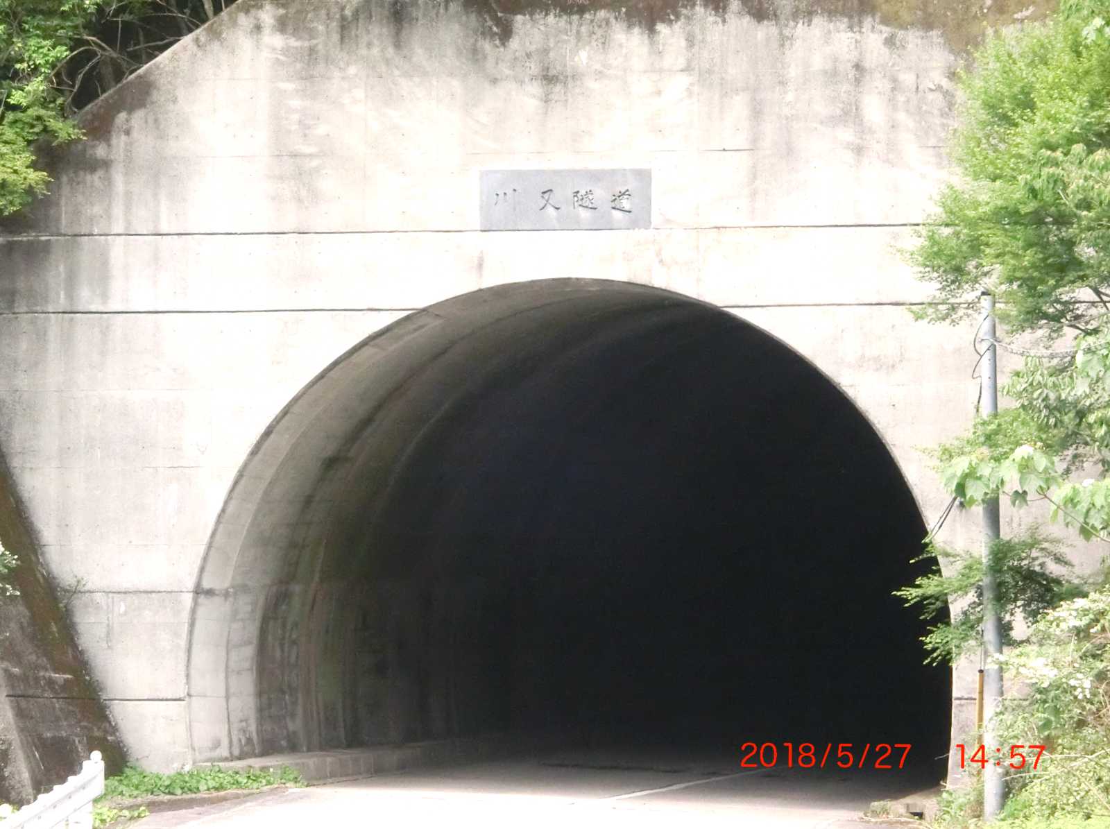 扁額では川又隧道となっている。銘板はなく、竣工年などは分からない。しかし、もう旧道の痕跡など全く見られず、それからして古いトンネルだろう。