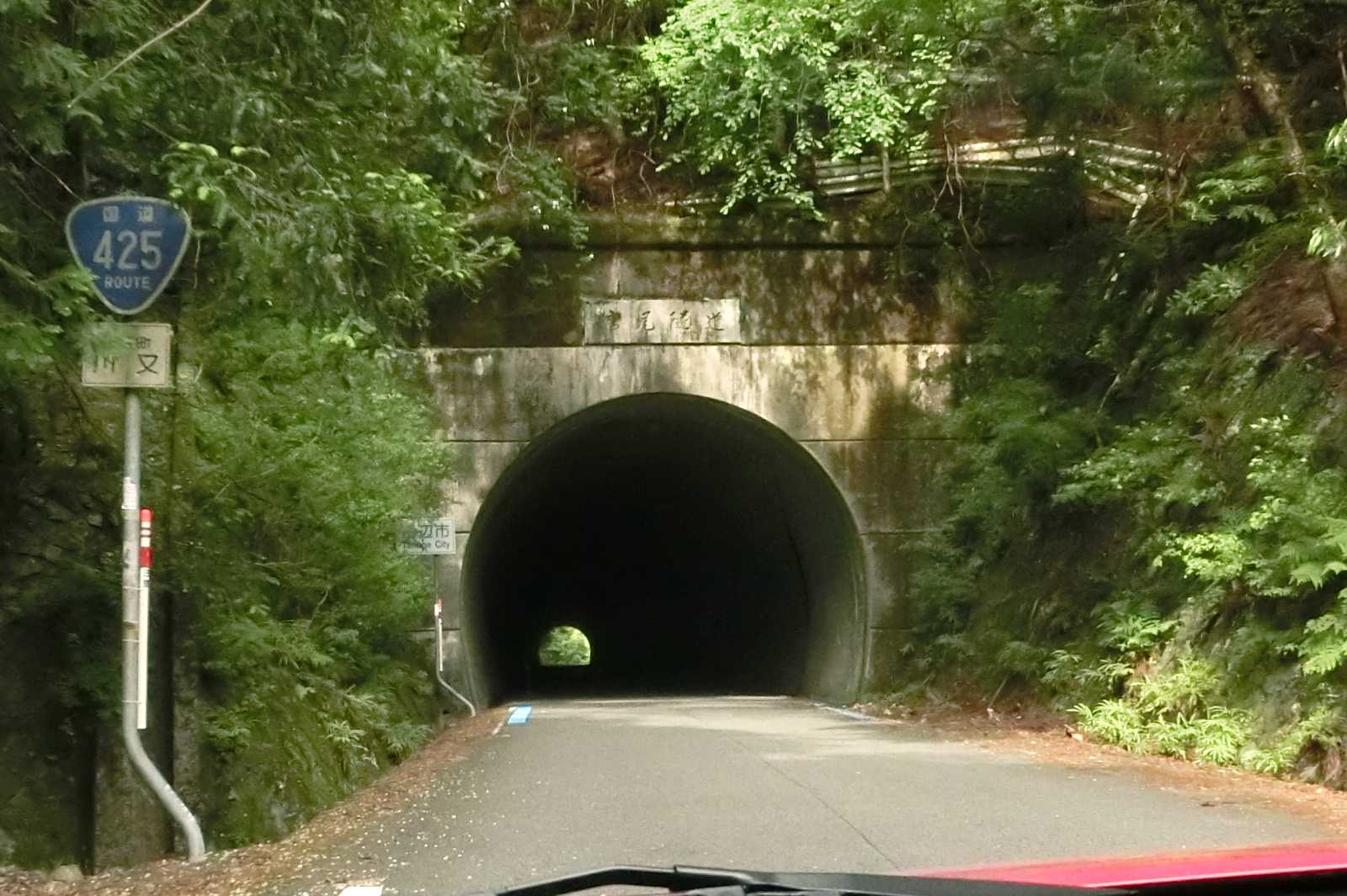 本当の切目川と日高川の分水界を越える峠は唐尾トンネルになる。扁額ではやはり「唐尾隧道」だ。切目川源頭部であり、印南町と田辺市龍神村との境になる。かつての龍神村だ。その後、国道425号は牛廻越を目指して日高川を遡って行く。