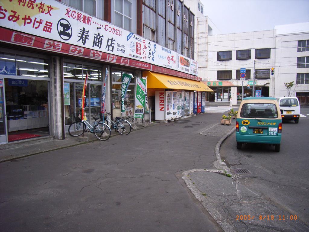 期待通り稚内駅は大きな駅で、何でも揃っていそうだった。駅前には広い駐車スペースもある。ただ、背後に稚内港を控え、海風が異常に強い。またバイクを倒さず停めるのに苦労する。