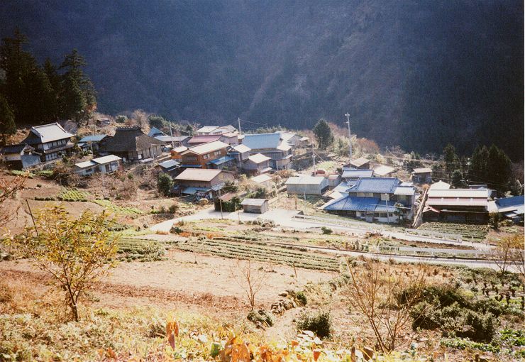 隣家の畑で朝からおじいさんが作業している。県道に上がって少し湯之奥集落方向に歩く。途中、近隣に住むおじいさんとすれ違い、挨拶する。その直ぐ先の県道沿いにもう一軒宿があった。