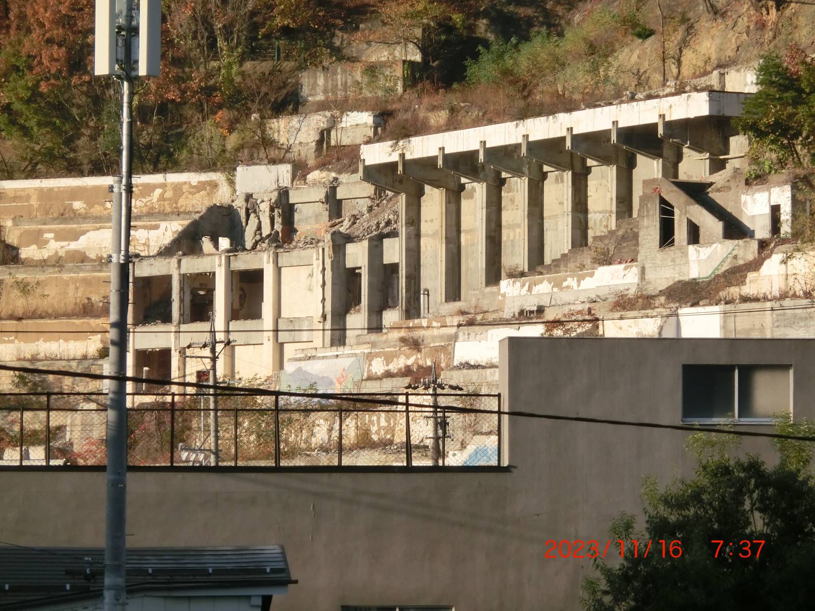 危険の無いようにある程度は解体されているようだが、まだ廃墟のような姿を留めている。
