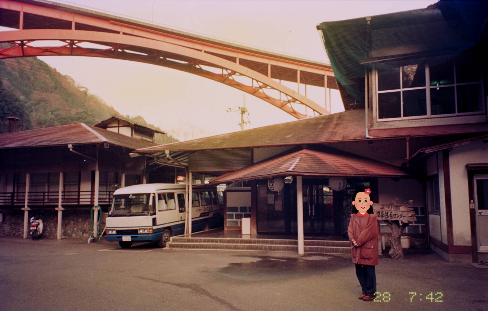 橋の近くに案内看板があり、橋の名のいわれなどが説明されている。この橋の名がゆくゆくはふいご温泉の命名にも繋がっている。