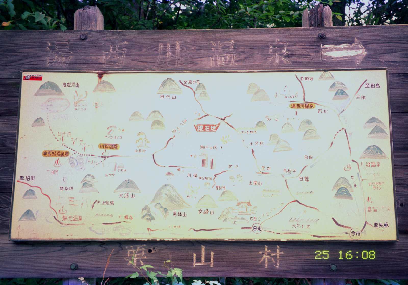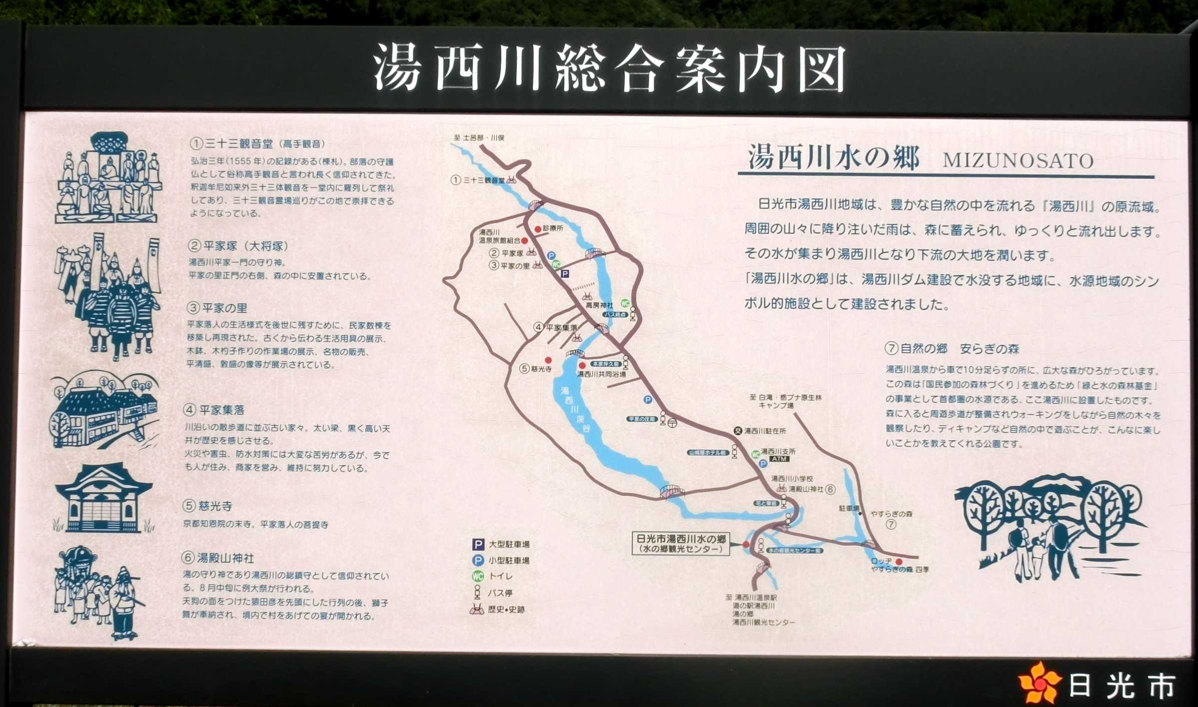 湯西川総合案内図の看板 (撮影 2024.10.17) |