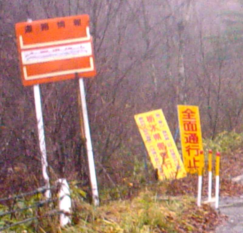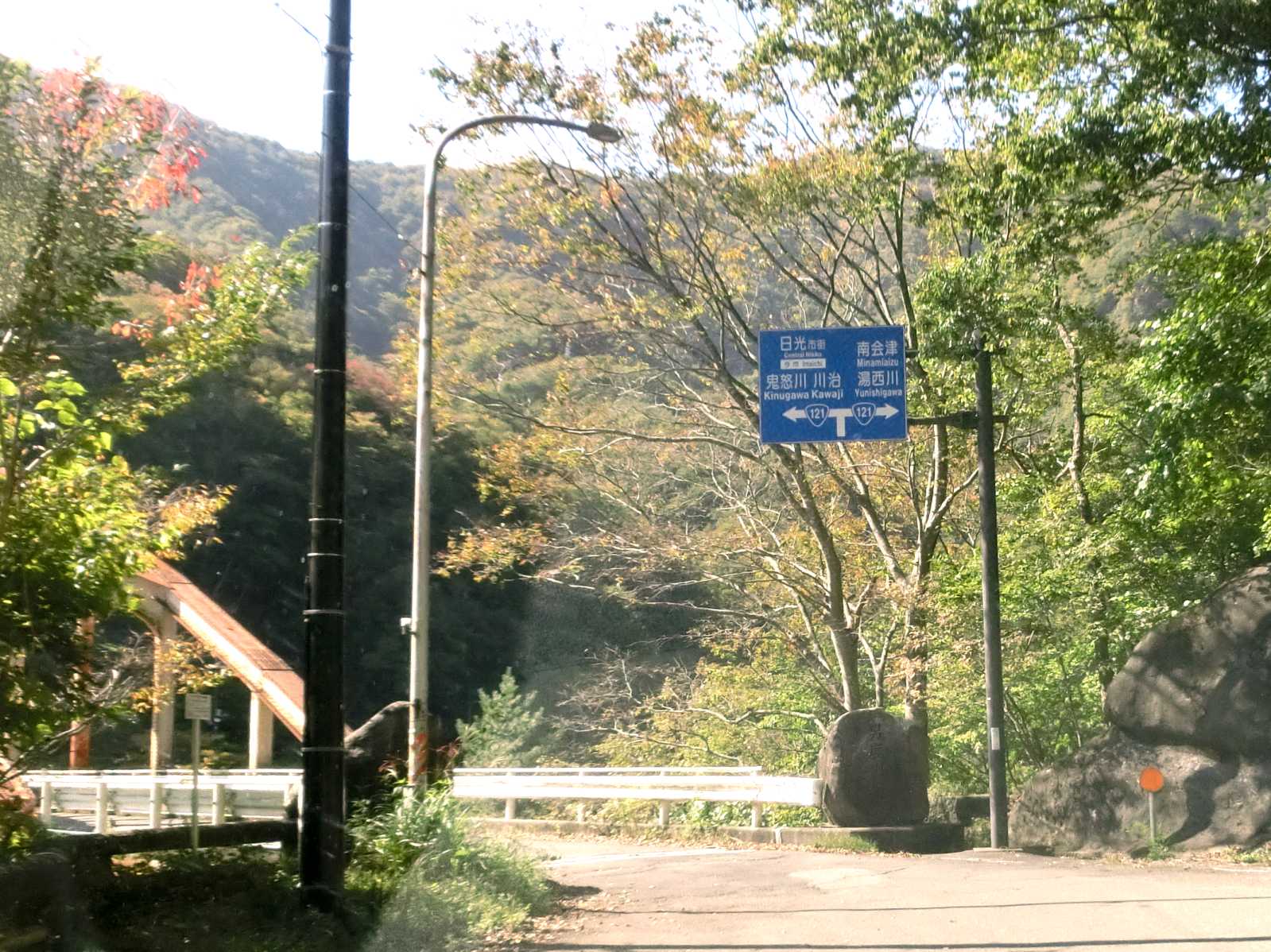 国道121号に接続するまで、13Kmにも満たないだろう。権現橋の袂に立つ道路情報の看板は、かつての難路を示す名残りである。撤去される日も近いのではないだろうか。 |