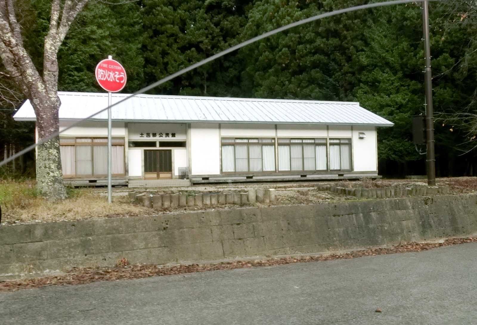 その入口に「土呂部公民館」とあった。その反対側には消防団の建屋が立つ。 |