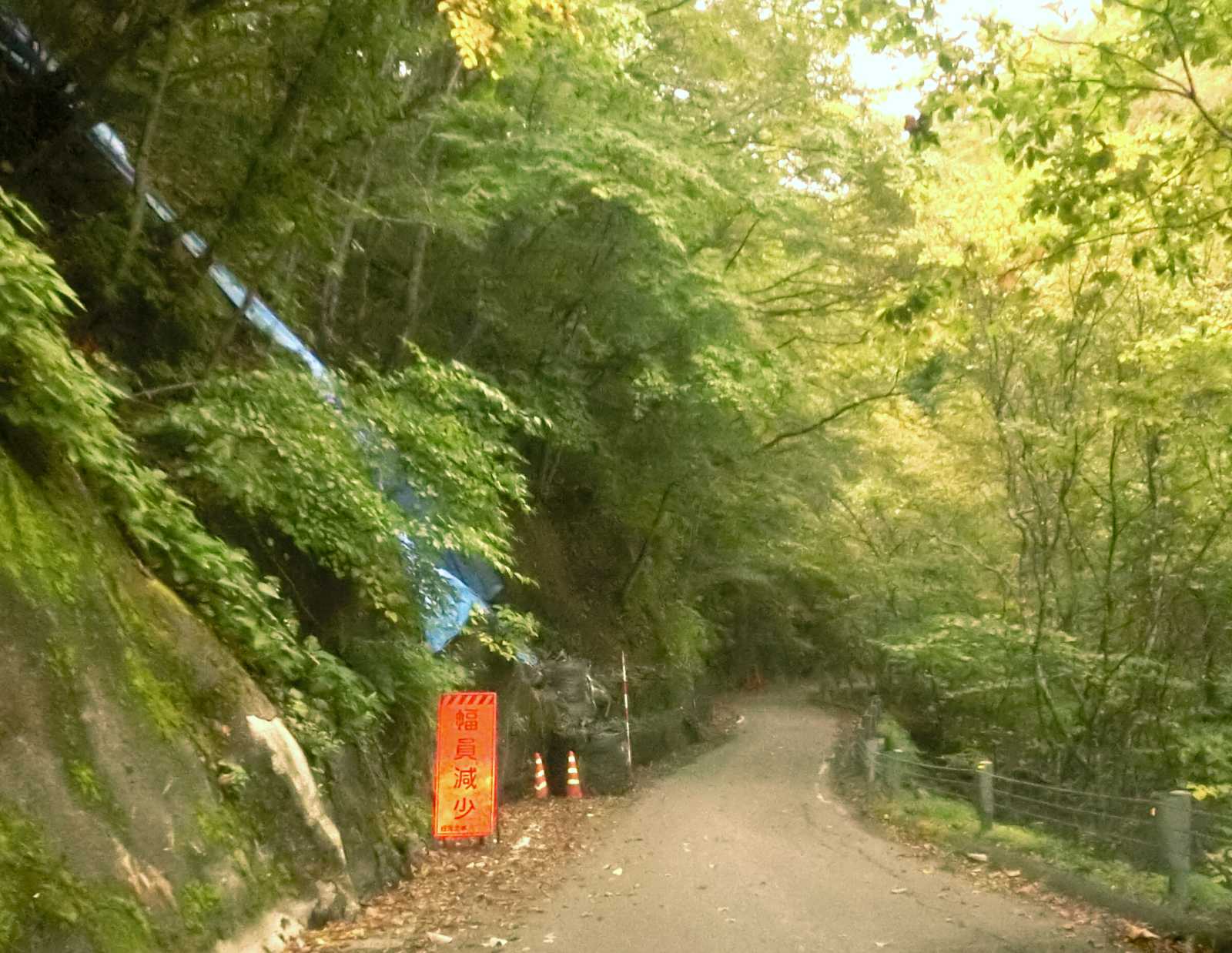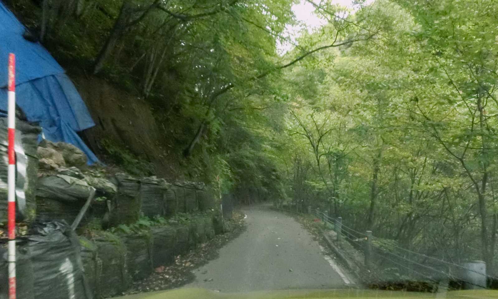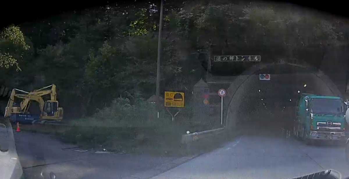 国道を湯の郷トンネル方向に見る (撮影 2024.10.17) |