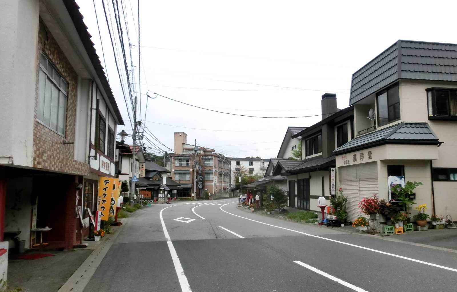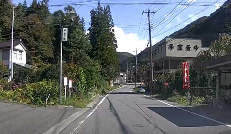 県道沿いの湯西川温泉街の様子 (撮影 2024.10.17) |