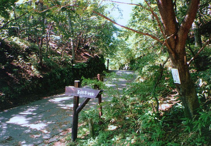 | 峠の直前は緩やかな直線の上り。その途中に道幅の半分を占拠して家族連れが休んでいる。ビニールシートを敷いて座り込み、茶菓子を食べている。これも一つの夏休みの過ごし方か。