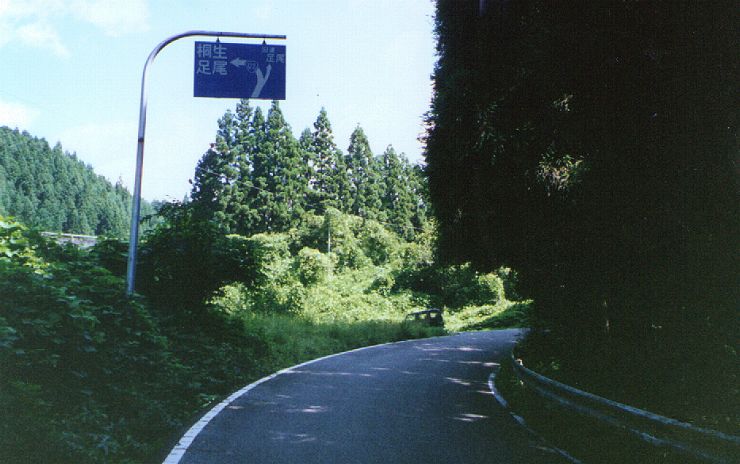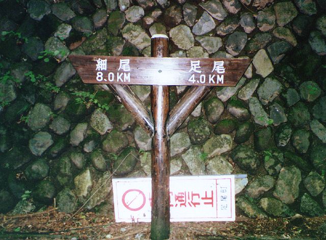 峠にある標識 「細尾8KM、足尾4KM」 |