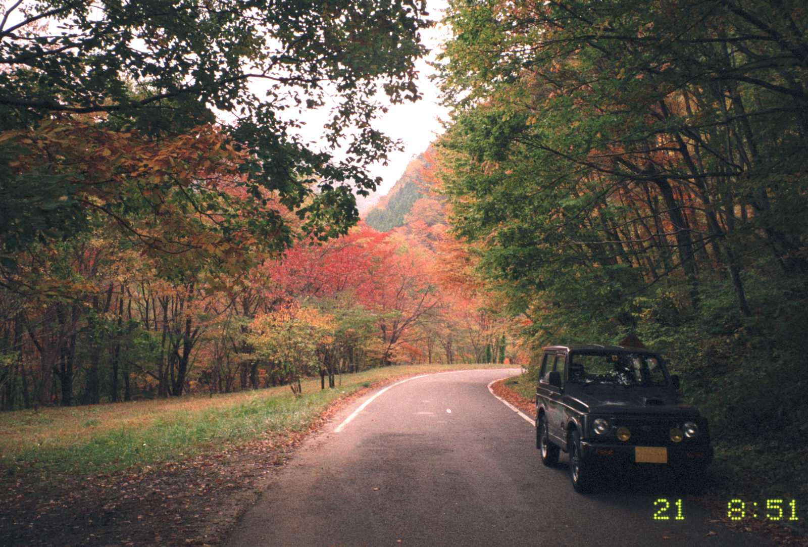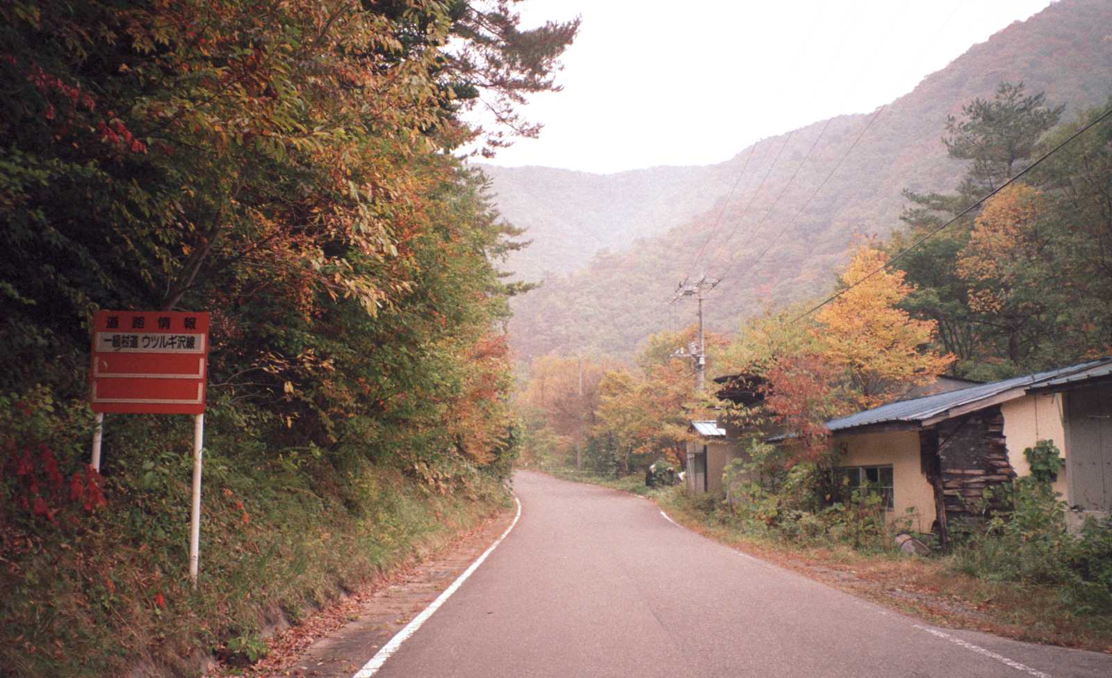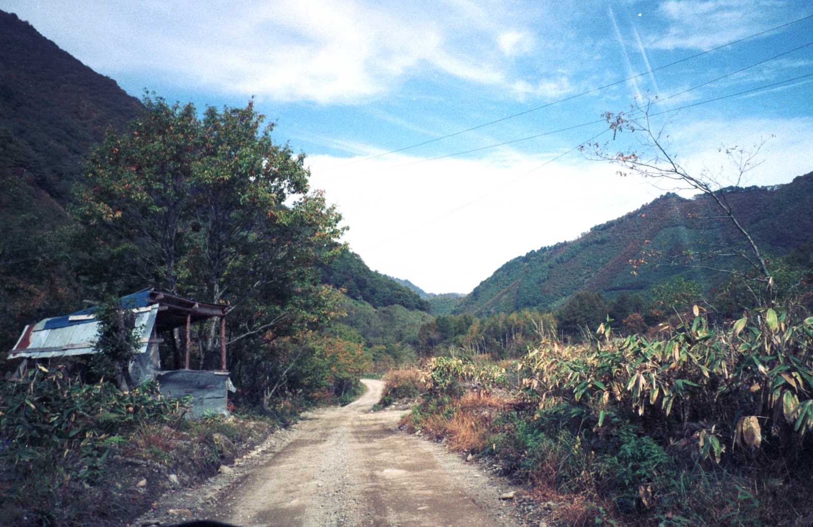 峠から舘岩村側に下る道 (撮影 2001.10.21) |