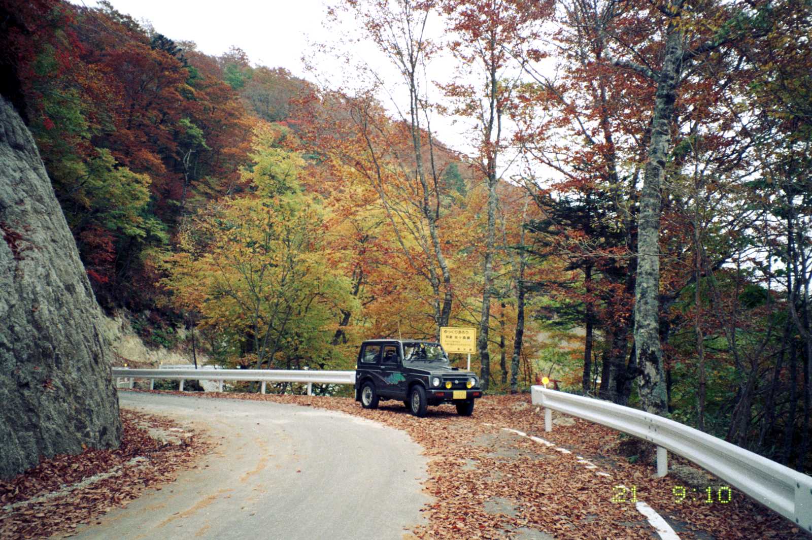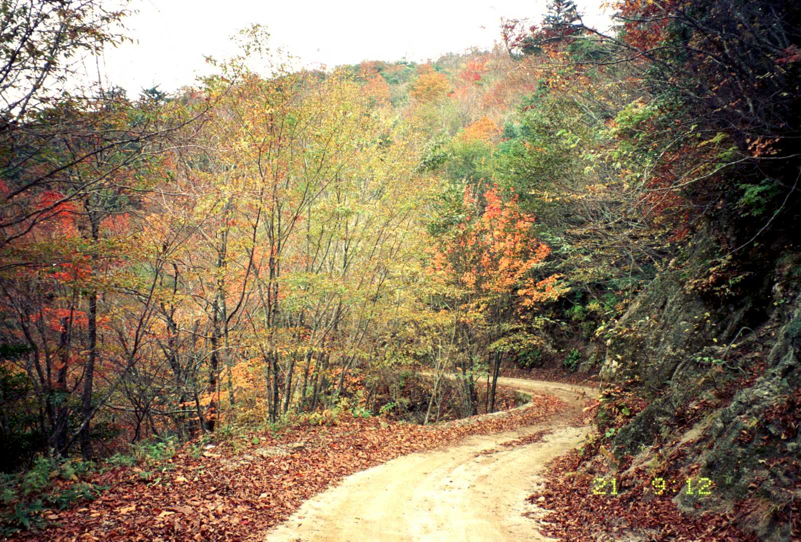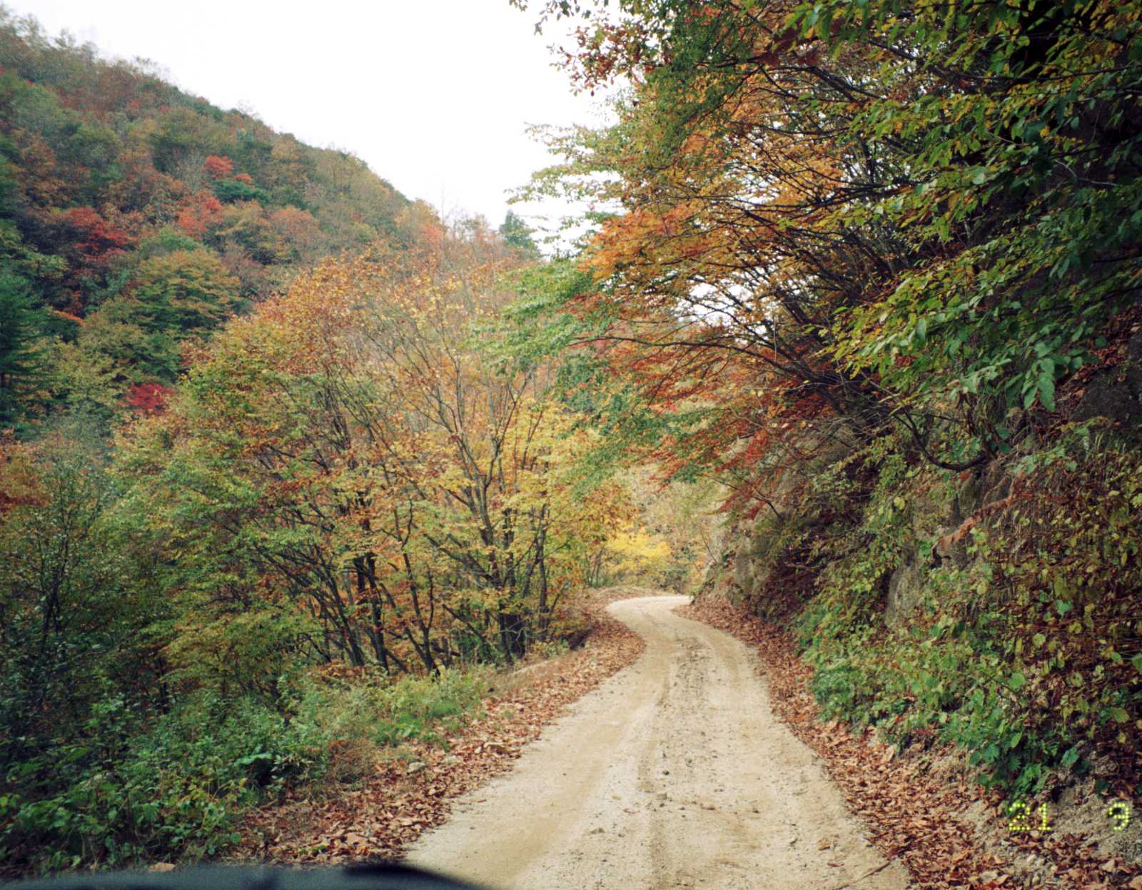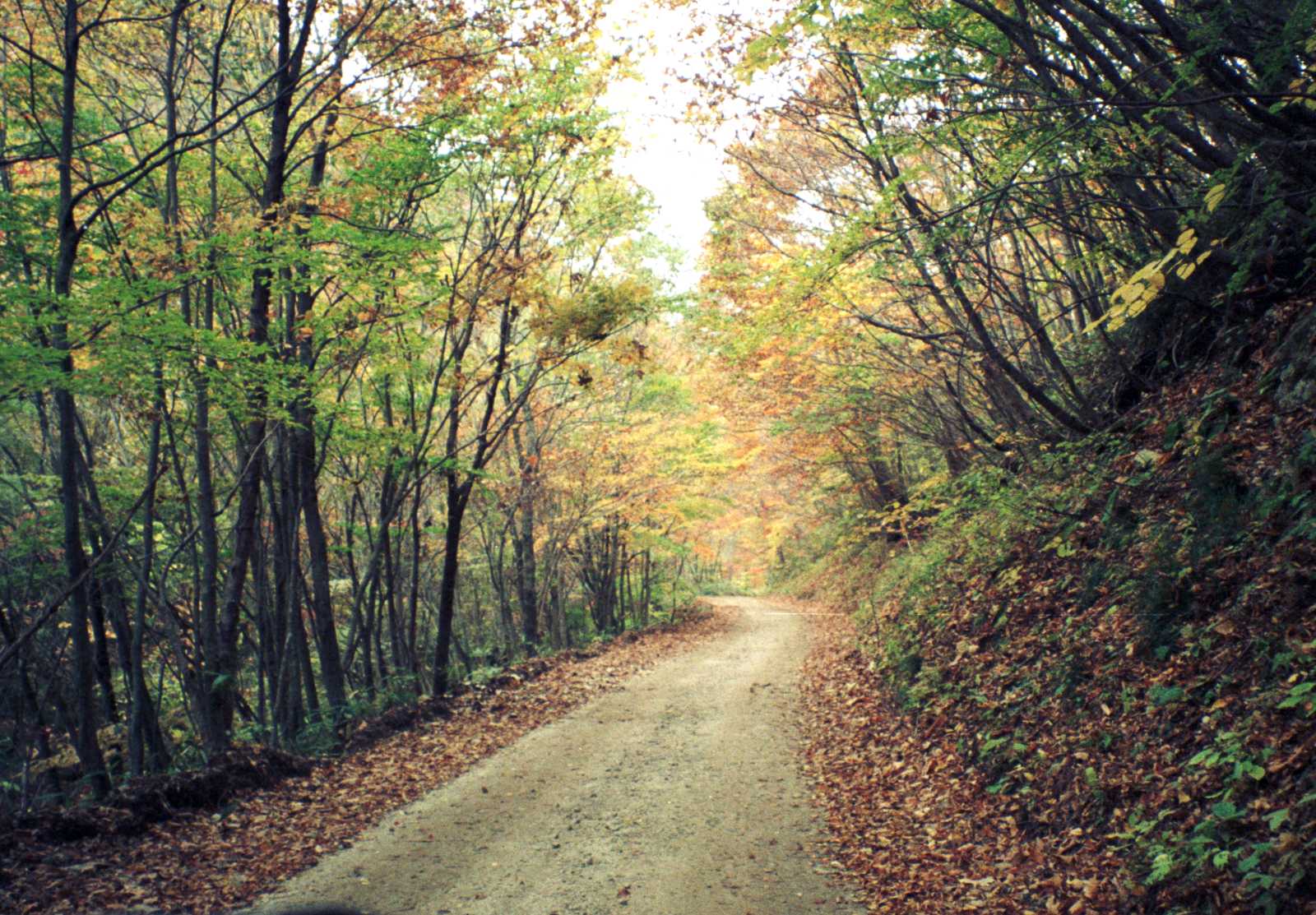 峠から舘岩村側に下る道 (撮影 2001.10.21) |