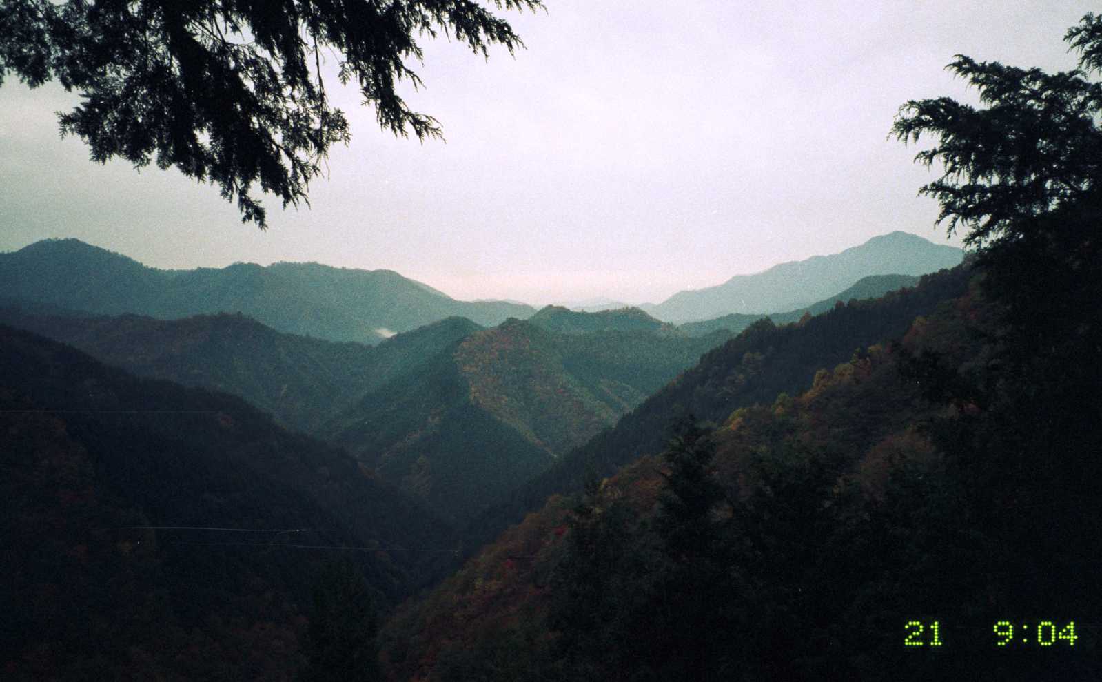 峠より栗山村側を見る(1/2) (撮影 2001.10.21) |