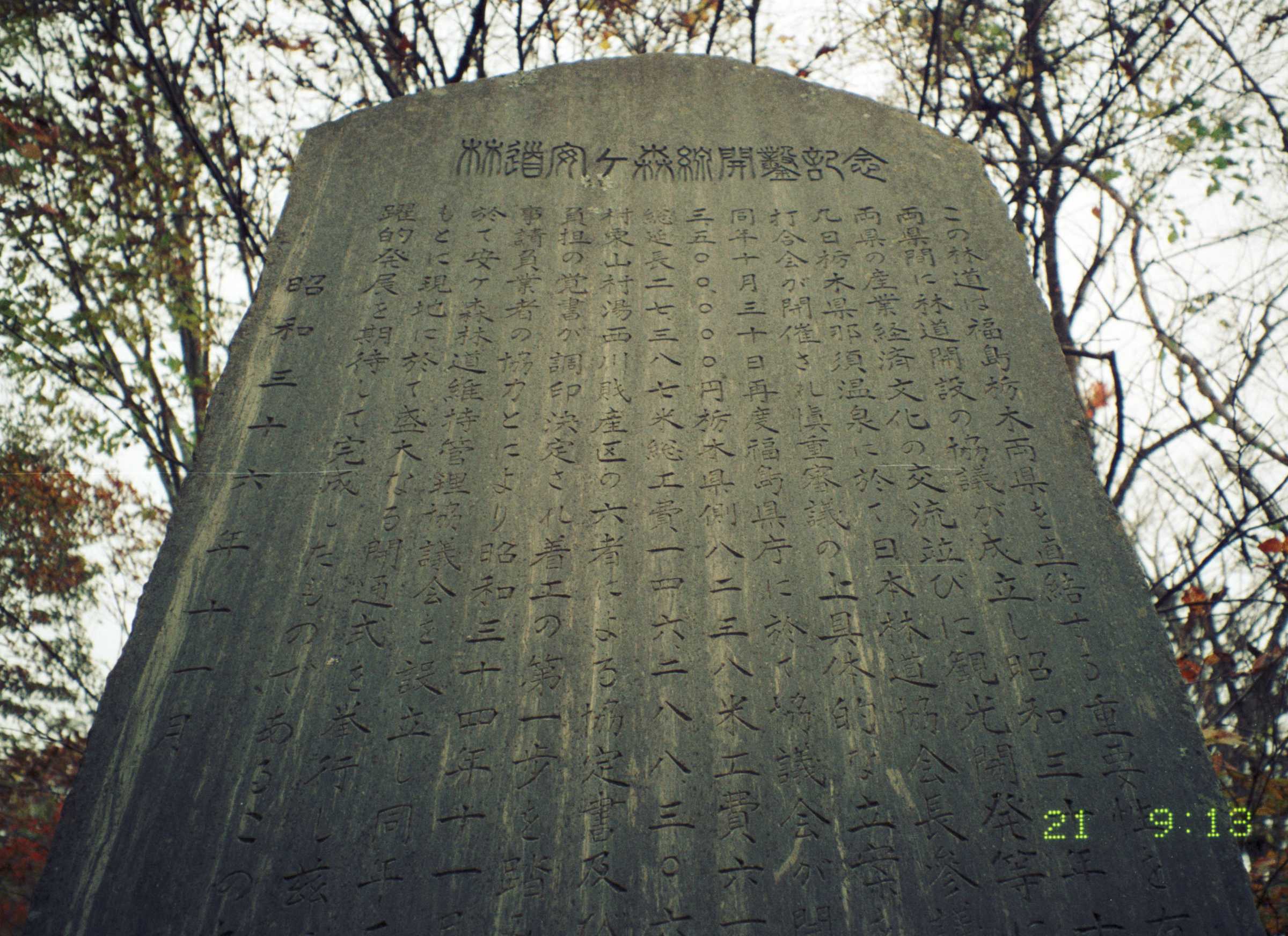 林道安ヶ森線開鑿記念の碑 (撮影 2001.10.21) |