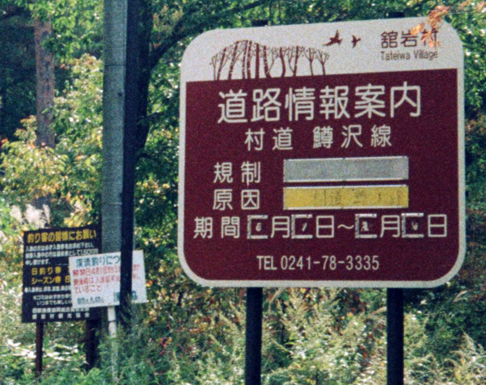 舘岩村村道の看板 (撮影 2001.10.21) |