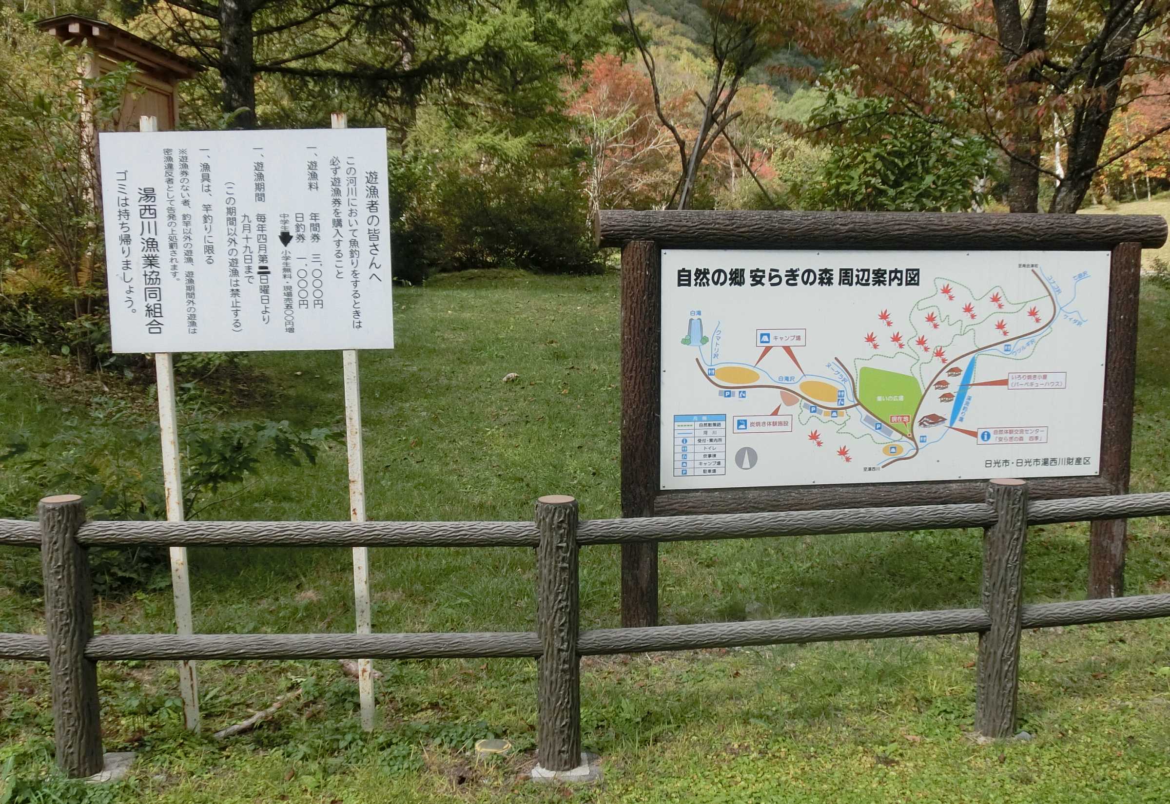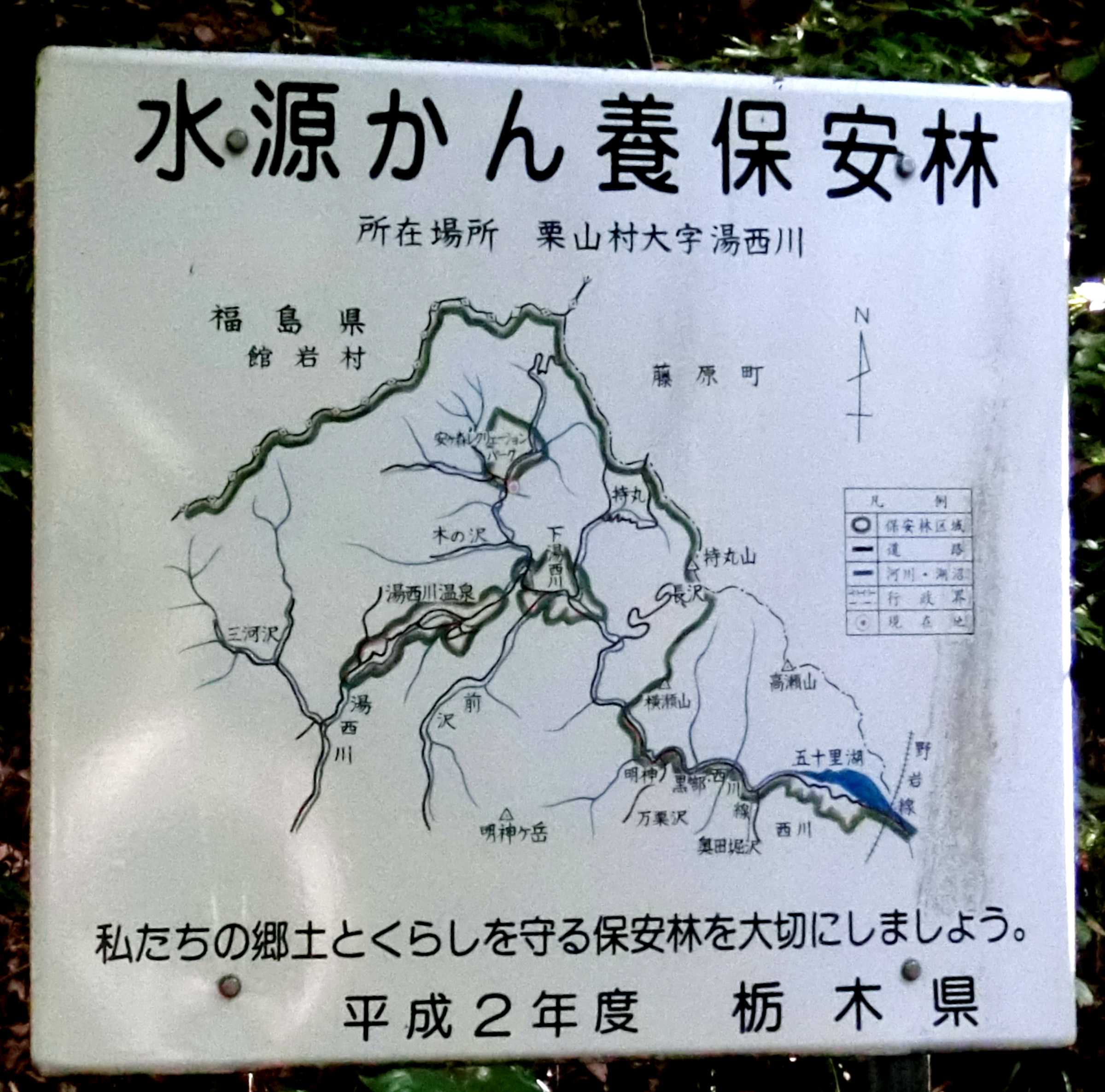 湯西川保全林案内図の看板 (撮影 2024.10.17) |